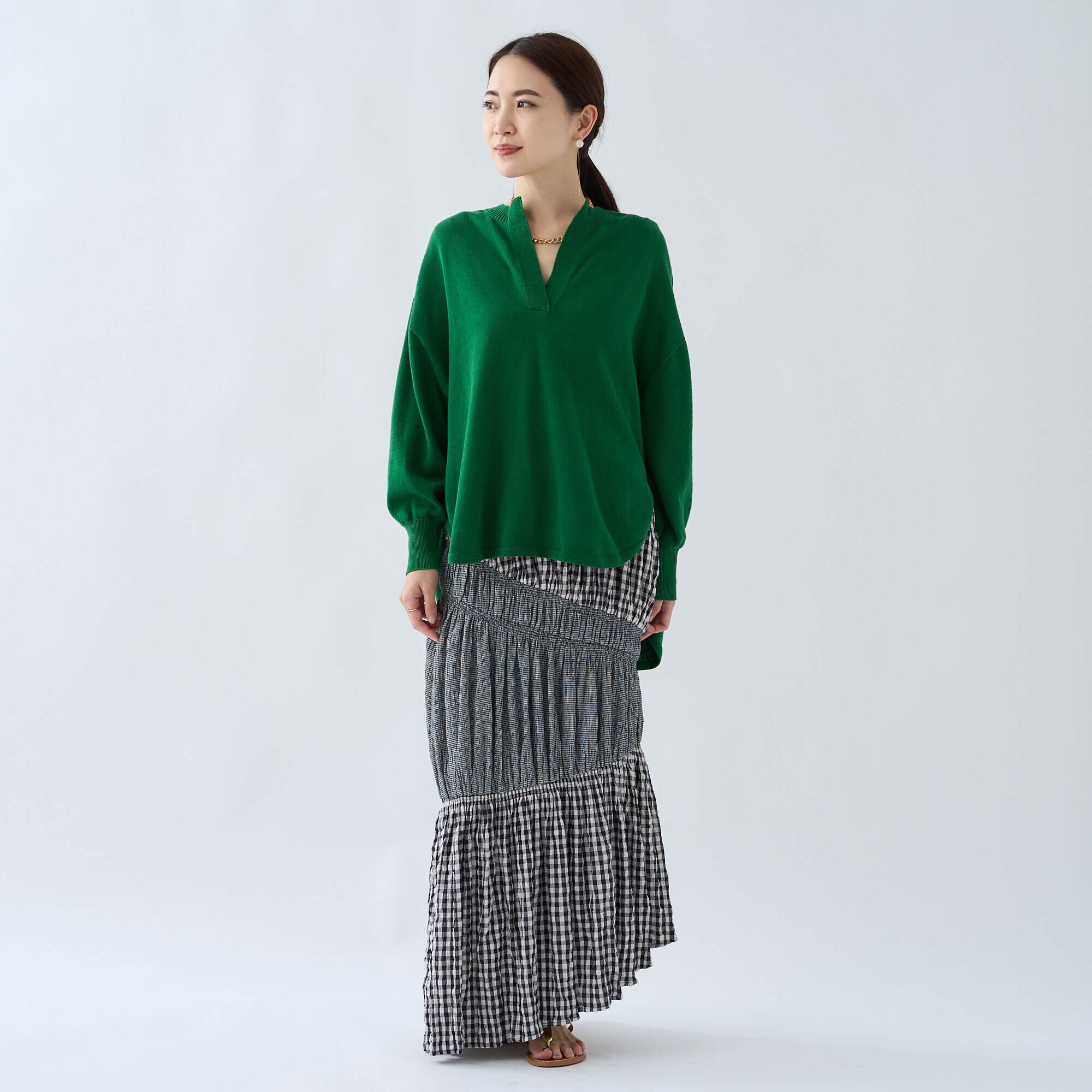 “Yamagata Knit”キーネックニットトップス グリーン